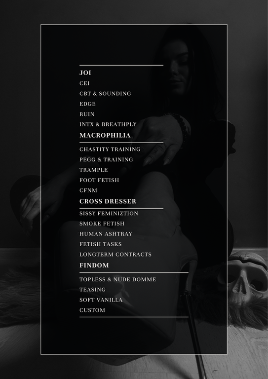brunette, leather, longnails, strapon, piercing, highboots, fastresponse, bdsm, findom, mistress, tattoos, femdom, smoke, tease, fetishes, training, longterm, softvanilla, prepayments, nakeddomme